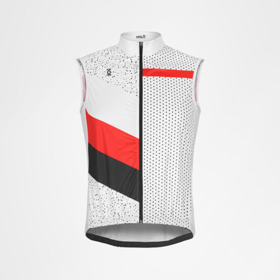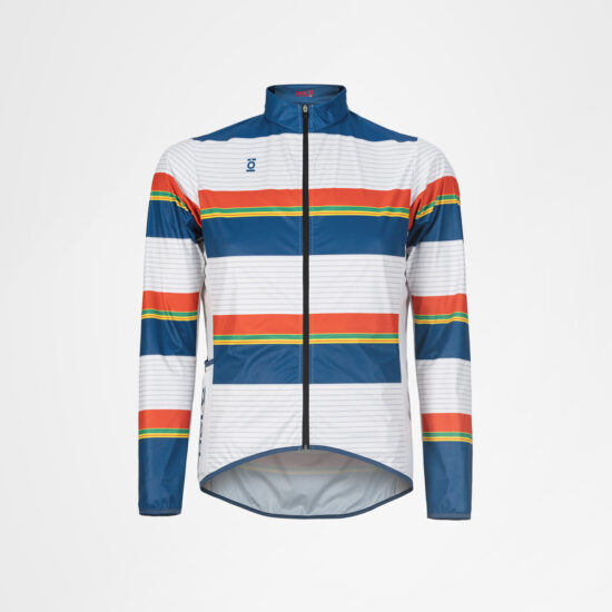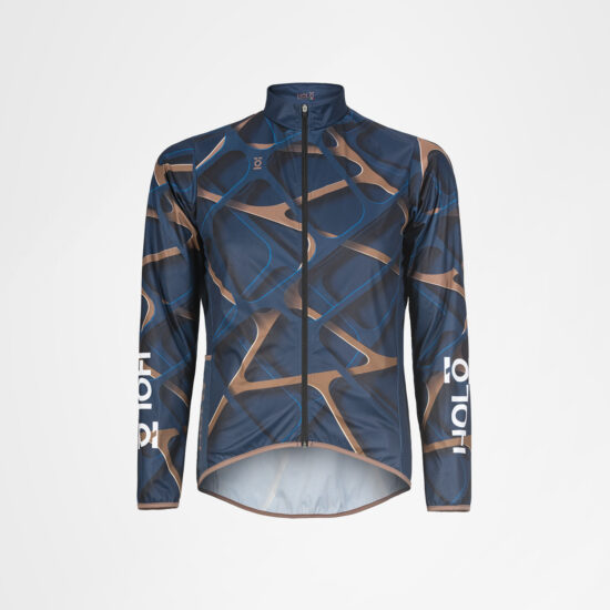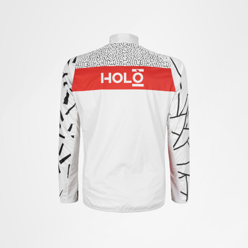 La giacca ha pannelli ultra leggeri, quello frontale è realizzato con un tessuto antivento e antiacqua, quello posteriore è realizzato con un tessuto traforato ed elasticizzato.